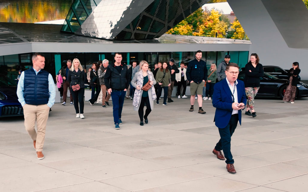 | Í tilefni af 50 ára afmæli Bílabúðar Benna og 25 ára samstarfi við Porsche, var haldin glæsileg árshátíð í Stuttgart í Þýskalandi. Ferðin var bæði fræðandi og skemmtileg, þar sem starfsfólk og makar fengu að upplifa einstaka samveru og kynnast betur sögu og framtíðarsýn Porsche. Komið á hótelið í Stuttgart. 17. OKTÓBER - VERKSMIÐJUHEIMSÓKN OG HUGMYNDAVINNA Dagurinn hófst á Porsche Museum þar sem tekið var á móti hópnum. Síðan var haldið í sýnisferð um Porsche verksmiðjuna undir handleiðslu starfsmanna Porsche. Þar var farið yfir samsetningu Porsche bifreiða, vélasamsetningu og bólstrun innréttinga – allt í samvinnu manna og vélmenna. Eftir verksmiðjuheimsóknina var tekin hópmynd fyrir framan Porsche safnið. Makar fengu frjálsan tíma á meðan starfsfólk Bílabúðar Benna hittu starfsmenn Porsche og tóku þátt í hugmyndavinnu um framtíðarsýn og þróun Bílbúðar Bennar. Síðar um daginn heimsótti hópurinn Porsche Sonderwunsch, þar sem sérsniðnar og breyttar Porsche bifreiðar eru hannaðar og var upplifunin einstök. Kvöldið endaði á góðri samveru á veitingastað í Stuttgart. 18. OKTÓBER - FRJÁLS DAGUR OG ÁRSHÁTÍÐ Í PORSCHE MUSEUM Laugardagurinn var frjáls og margir nýttu daginn til að skoða miðborg Stuttgart og versla. Um kvöldið hittist hópurinn í sínu fínasta pússi í lobbíinu á hótelinu áður en haldið var á stað í Porsche Museum þar sem árshátíðin fór fram. Við móttöku safnsins var boðið upp á fordrykk og leiðsögn um sögu Porsche. Á efstu hæð safnsins beið veislusalur þar sem gestir frá Porsche – yfirmenn og samstarfsaðilar – tóku á móti hópnum. Þar hófst árshátíðardagskráin með mat, drykk og myndasýningu um sögu Bílabúðar Benna. Og að sjálfsögðu var bæði 50 ára afmæli fyrirtækisins og 25 ára samstarfið við Porsche haft í hávegum. Kíkt á bak við tjöldin í leyni herbergi á Porsche Museum. Við þökkum Porsche fyrir frábærann tíma hjá þeim í Stuttgart. |