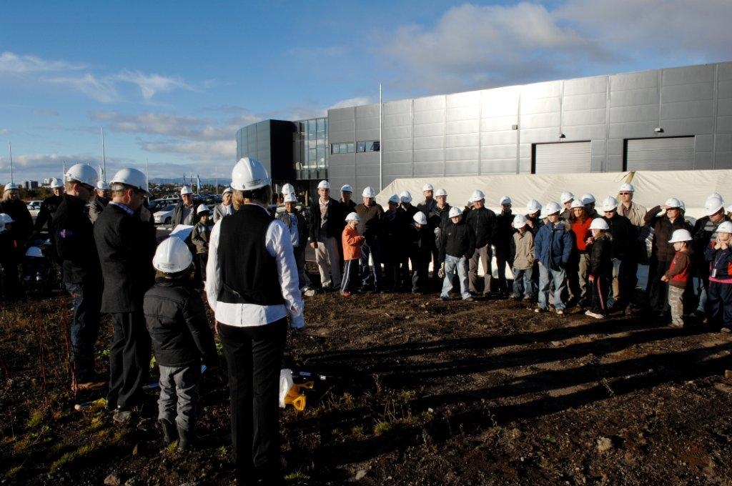 Fyrstu skóflustungurnar að nýjum höfuðstöðvum.